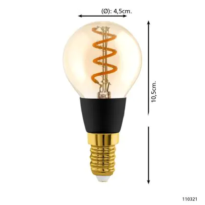 Die Eglo Connect.Z Smart LED Kugel E14 Fadenlampe Messing 4.9W 320lm - 827-865 Abstimmbares Weiß | Dimmbar - Ersatz Für 25W ist eine effiziente E14 LED-Lampe mit Retrodesign und der perfekte Ersatz für Ihre konventionellen 25W Lampen mit E14. Zudem strahlt sie Licht in der Farbtemperatur 2700K - 6500K Tunable White aus und punktet durch eine lange Lebensdauer.