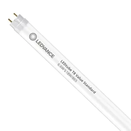 Die T8 LED-Röhren von Ledvance gibt es in verschiedenen Farbtemperaturen: Extra Warmweiß (2.700 K und weniger), Warmweiß (3.000 K), Kaltweiß (4.000 K) und Tageslichtweiß (6.500 K). Diese Röhre strahlt ihr Licht in 6500K - Tageslichtweiß aus.