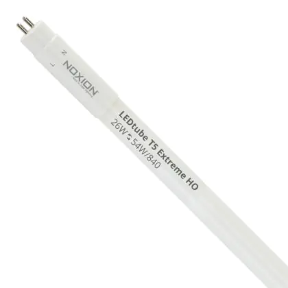 Die Noxion LED Röhre T5 Avant Extreme (Mains AC) High Output 26W 3900lm - 840 Kaltweiß | 115cm - Ersatz für 54W ist eine effiziente Noxion T5 LED-Röhre und der perfekte Ersatz für Ihre konventionelle Leuchtstoffröhre mit 54W. Die Röhre hat eine Länge von 1163 mm und einen Durchmesser von 18 mm. Zudem strahlt das Produkt Licht in der Farbtemperatur 4000K - Kaltweiß aus und punktet durch eine lange Lebensdauer.