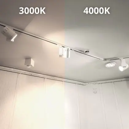 Der LED-Schienenstrahler kommt mit der Farbtemperatur 3000K - Warmweiß daher. Als Faustregel gilt: Je niedriger der Kelvinwert, desto gemütlicher wirkt das Licht.