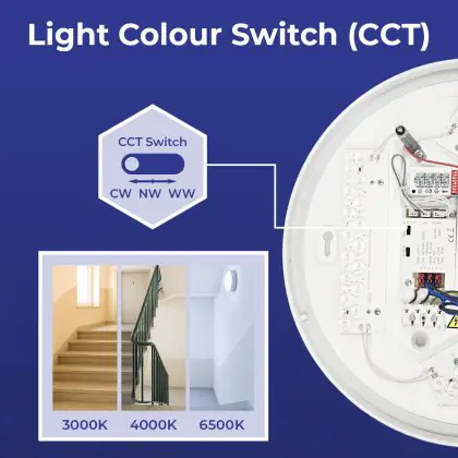 Die Noxion LED-Wand- und Deckenleuchte Corido V2 Weiß 12/16/20W 2000lm 830-840-865 CCT | IP44 - Bewegungs- und Lichtsensor - Not 3H ist eine Feuchtraumleuchte. Sie strahlt Licht in der Farbtemperatur aus und punktet durch eine lange Lebensdauer. Diese Leuchte ist speziell zur Verwendung in Feuchträumen (Keller, Waschräume, etc.) vorgesehen.