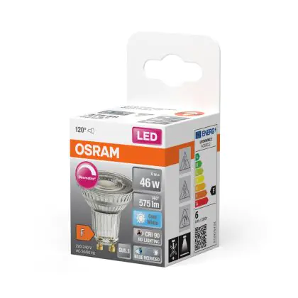 Die Osram LED Superstar Reflektor Spot GU10 PAR16 6W 575lm 120D - 940 Kaltweiß | Höchste Farbwiedergabe - Dimmbar - Ersatz Für 80W ist eine effiziente GU10 LED-Lampe und der perfekte Ersatz für Ihre konventionelle Halogenlampe mit 80W und einem GU10-Sockel, bei welchem die zwei Stifte einen Abstand von 10 mm zueinander haben. Zudem strahlt das Produkt Licht in der Farbtemperatur 4000K - Kaltweiß aus und punktet durch eine lange Lebensdauer.