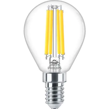 Die Philips Master Value LED Lustre E14 Kugel Fadenlampe Klar 3.4W 470lm - 927 Extra Warmweiß | Höchste Farbwiedergabe - Dimmbar - Ersatz für 40W ist eine effiziente E14 LED-Lampe mit Retrodesign und der perfekte Ersatz für Ihre konventionellen 40W Lampen mit E14. Zudem strahlt sie Licht in der Farbtemperatur 2700K - Extra Warmweiß aus und punktet durch eine lange Lebensdauer.